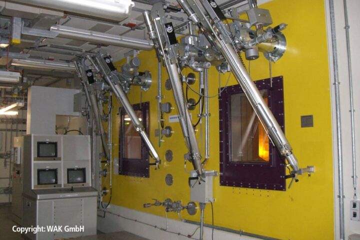 Sollte doch einmal eine Wartung oder Reparatur erforderlich werden, können Ersatz- oder Verschleißteile dank der Modularen Bauweise schnell und einfach ausgetauscht werden. Der "kalte" Arm ist lediglich mit vier Schrauben an der Wanddurchführung befestigt. Sämtliche Gegenwichte und Elektroantriebe sowie deren elektrische Steuerungselemente sind außerhalb der Zelle am kalten Arm angebracht und bequem zugänglich.