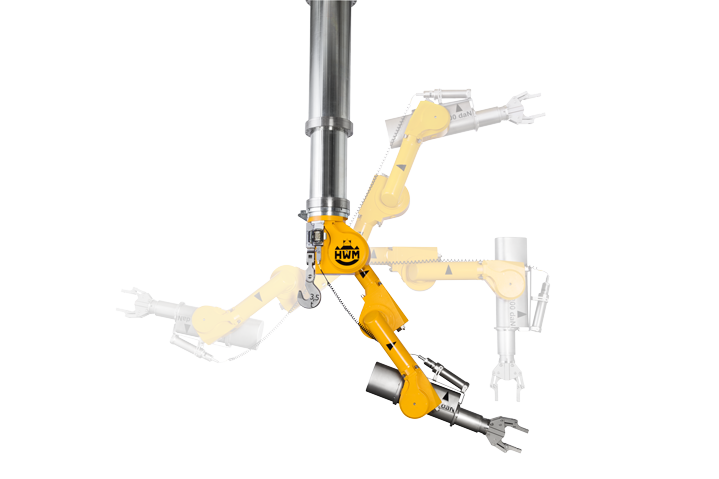Eine besonders raffinierte Lösung der HWM-Ingenieure steckt hinter der unendlichen Drehbewegung der verschiedenen Achsen. Daraus resultiert eine maximale Flexibilität in Bezug auf die Verwendung. Außerdem können Sie durch die optimierten Bewegungsbereiche jeden Punkt im vorgegebenen Arbeitsbereich erreichen.