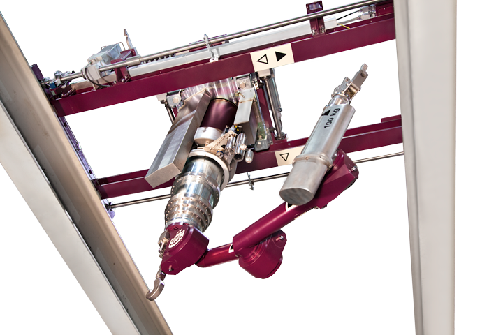 Der elektrische Kraftmanipulator A4000 ist einen Manipulator mit Robotik-Funktion für die Installation in einer Strahlenschutzwand in einem 300 mm Wandrohr.